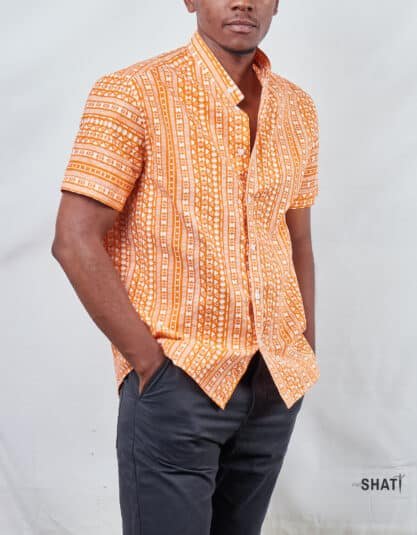 Modern Black & White Floral Print Short Sleeve Mens Shirt with Chinese Collar