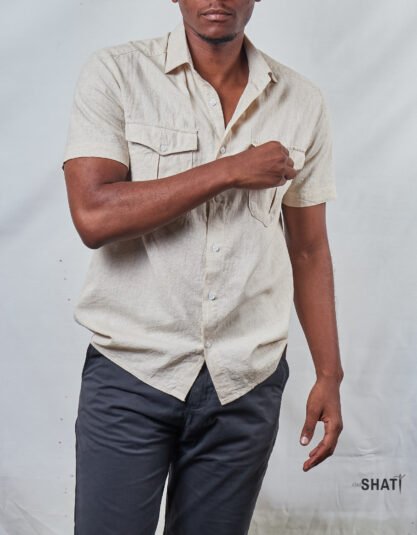 Two Pocket long Sleeved Button Down Collar Chambray Mens Shirt