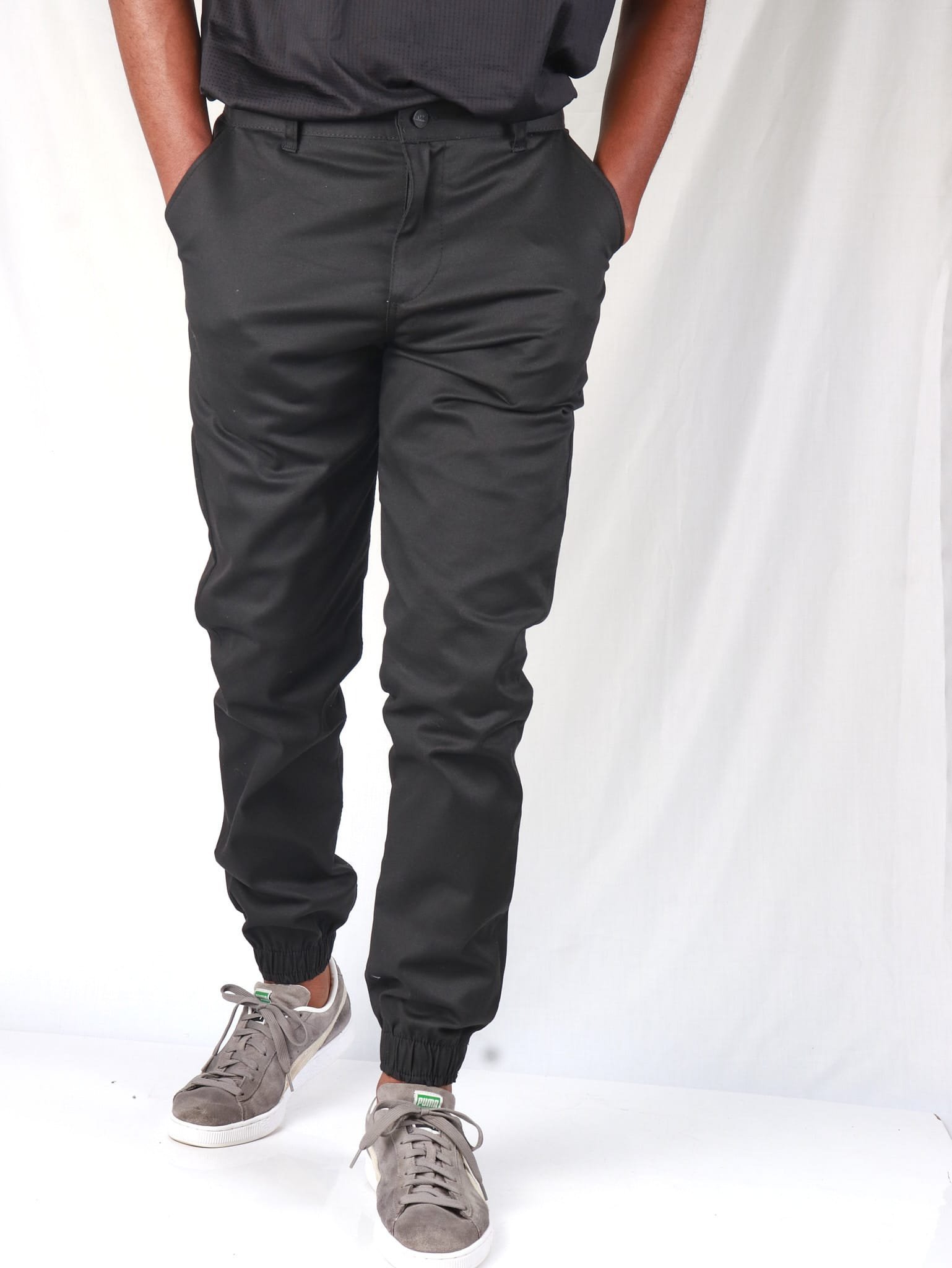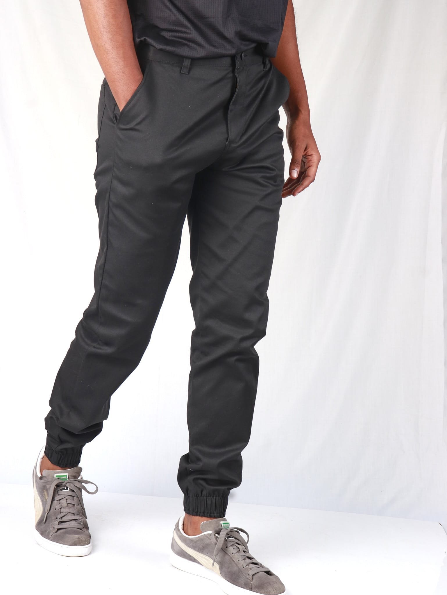 ATHLETIC FIT: Extra room in the hip and thigh, tapered calf and e;astic ankle. Sits at the waist. Built to fit like a straight pant on an athletic body.