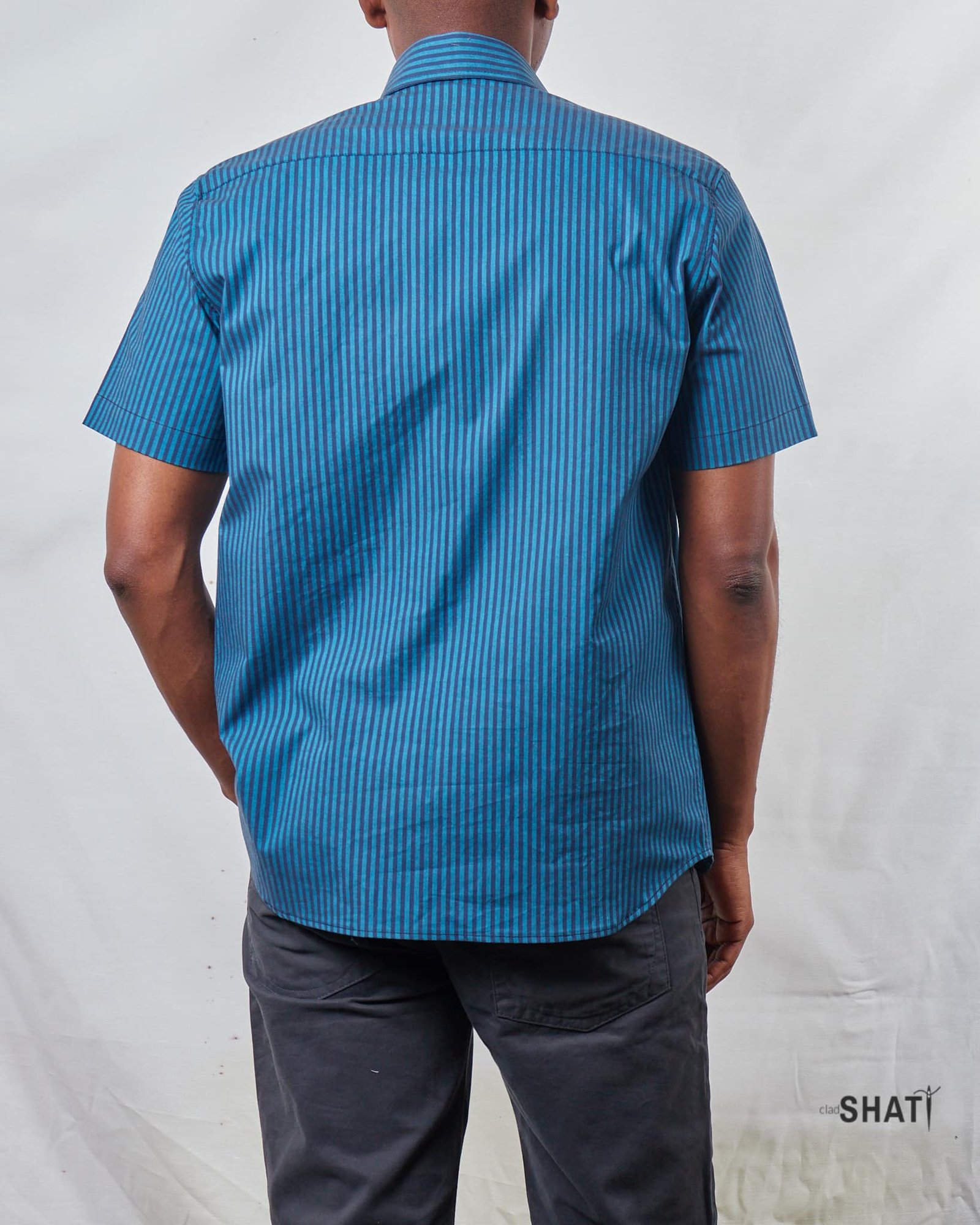 Discover timeless style with our blue vertical striped regular collar short-sleeved button-down shirt. Perfect for casual outings or a relaxed workday, it combines a modern design with classic elegance, making it a versatile addition to your wardrobe.