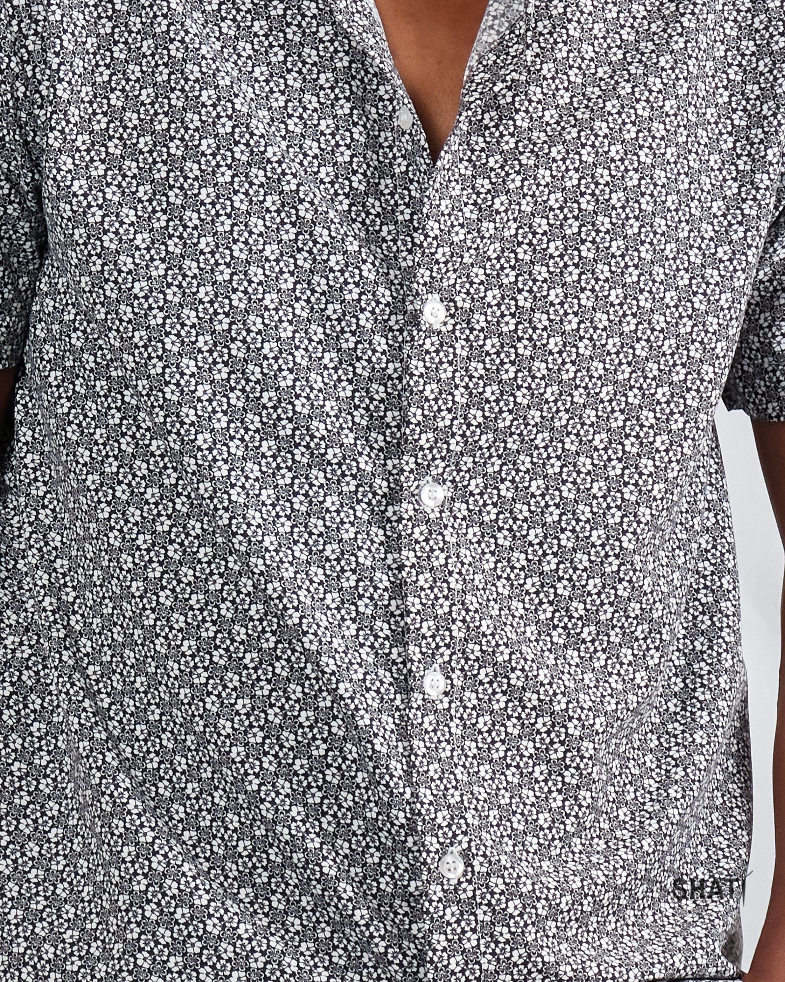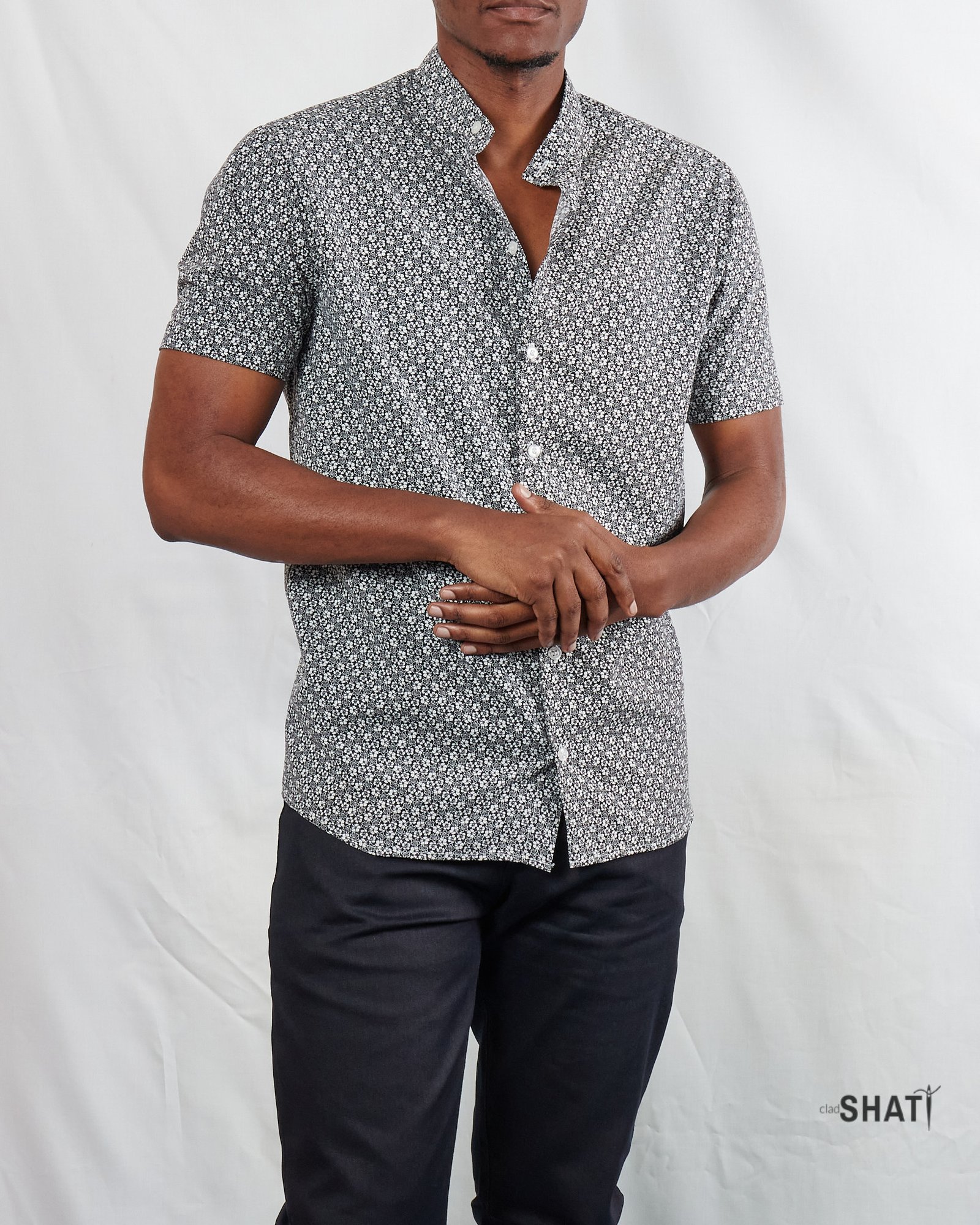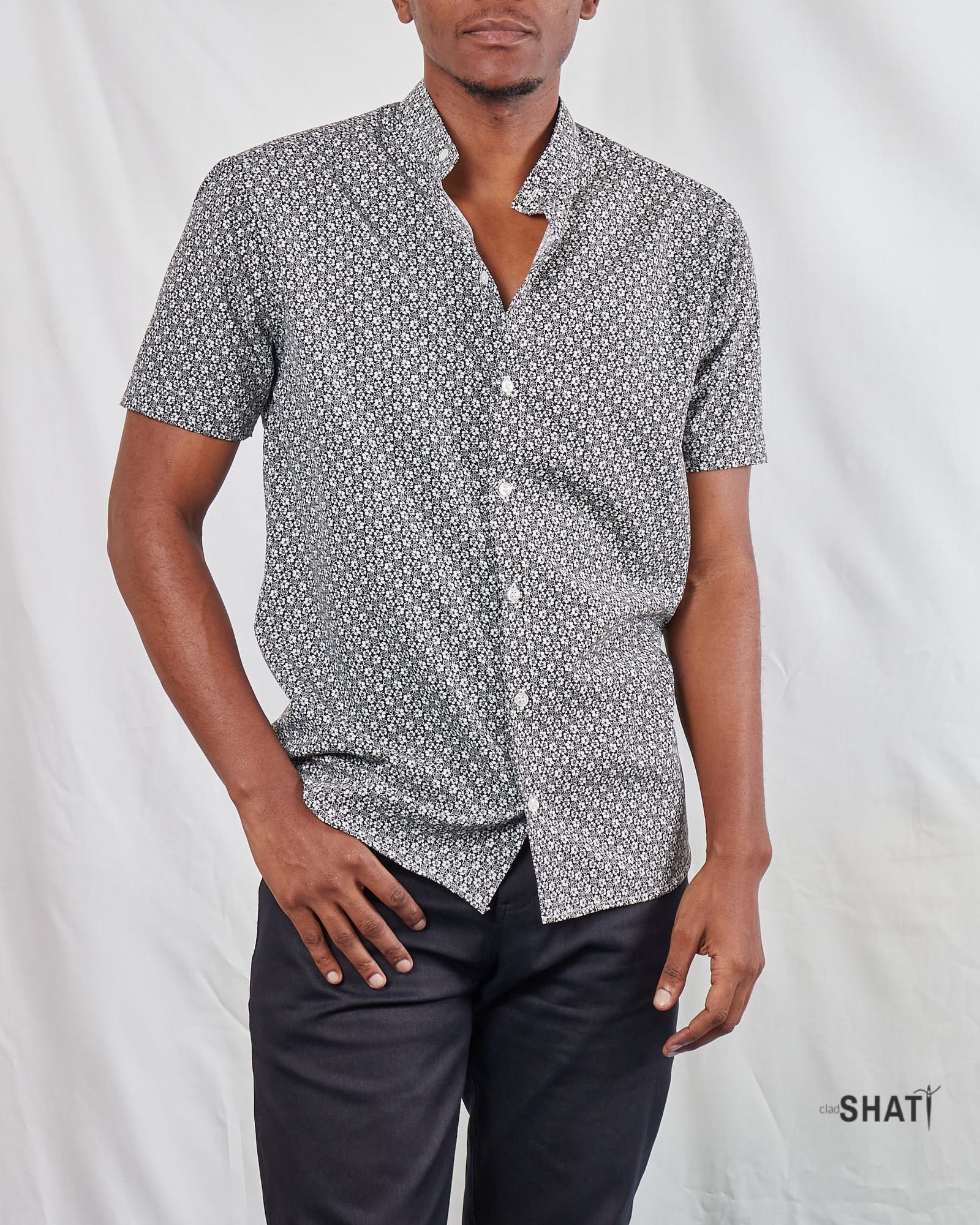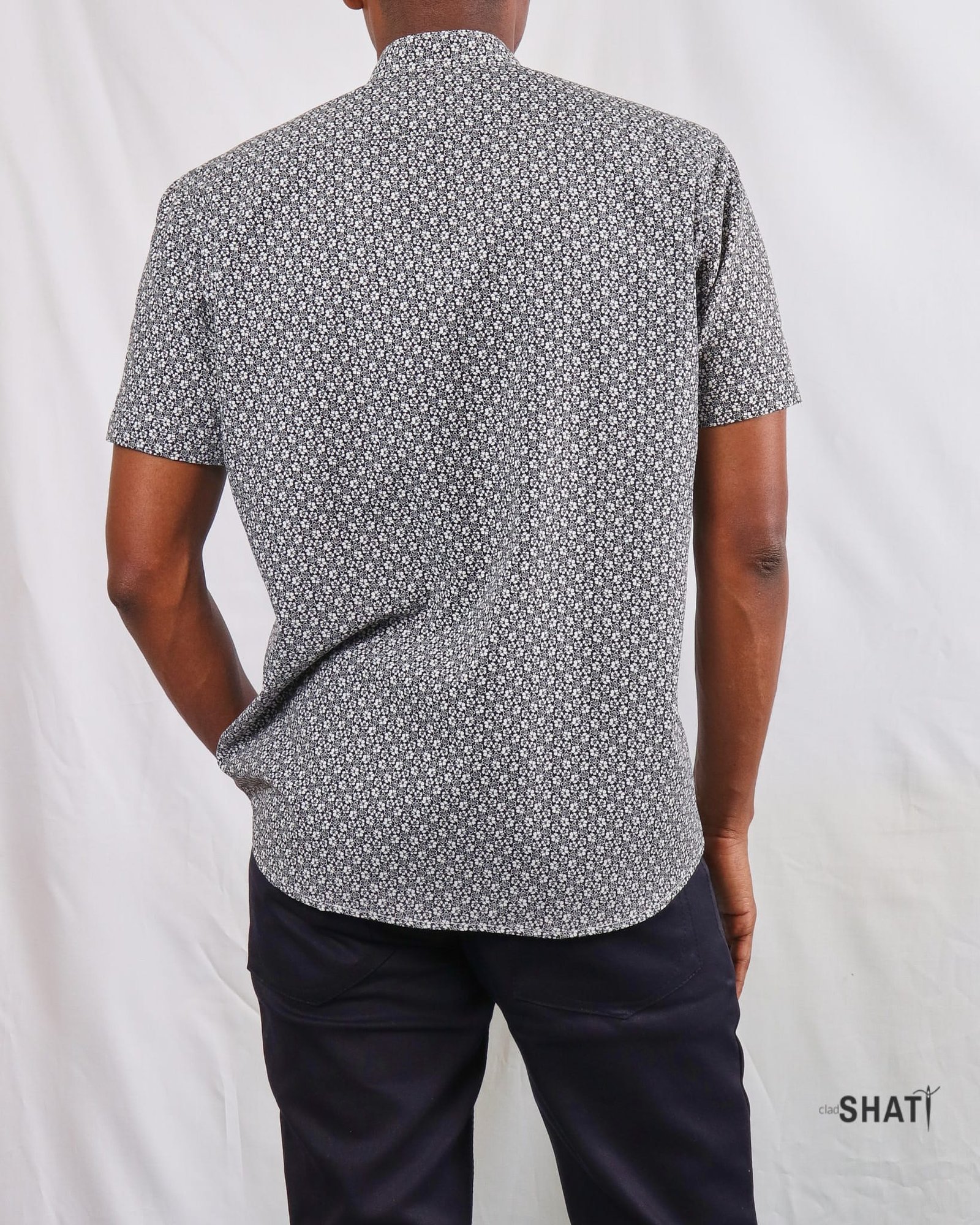 Effortless elegance in our Black & White Floral Chinese Collar Short Sleeve Shirt. Perfect for both casual and semi-formal occasions, this shirt blends timeless oriental charm with modern versatility.