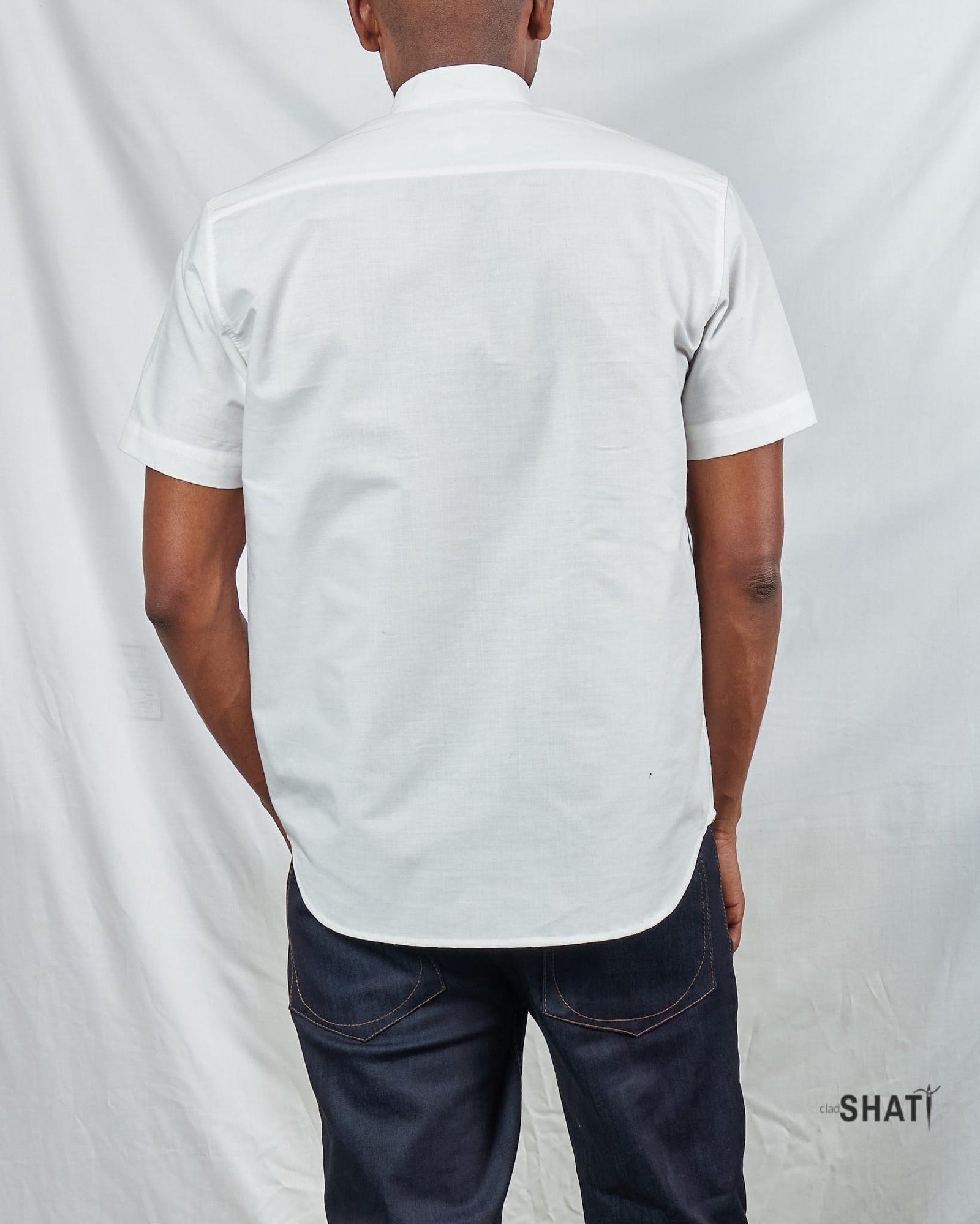 Two Pockets Chinese Collar Short Sleeved Men’s White Shirt