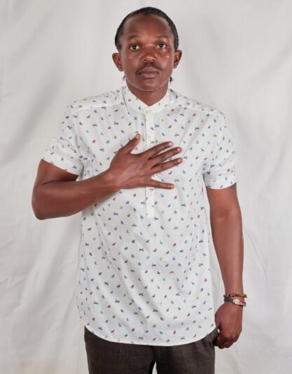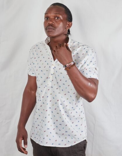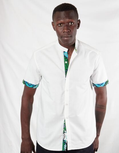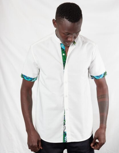 White Chinese Collar Ankara Kitenge Short Sleeve Shirt
