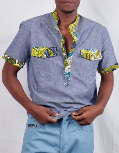 Two Pocket chambray kitenge Ankara shirt