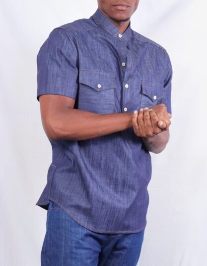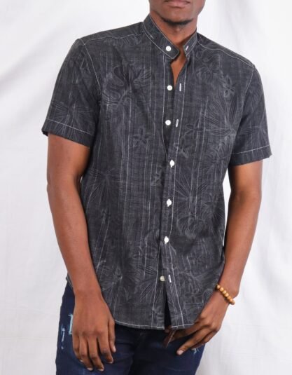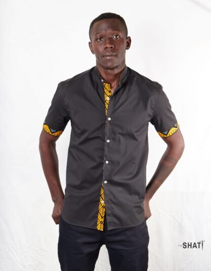 Black Chinese Collar short sleeve kitenge Ankara Shirt
