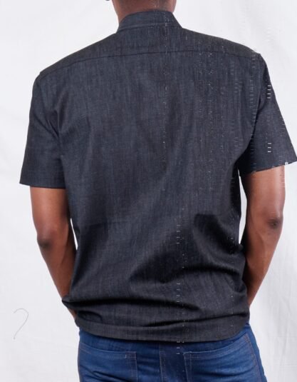 Black two pocket half plaquette men’s denim jeans casual shirt