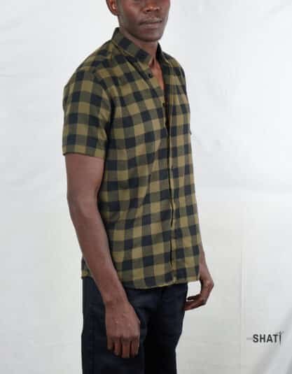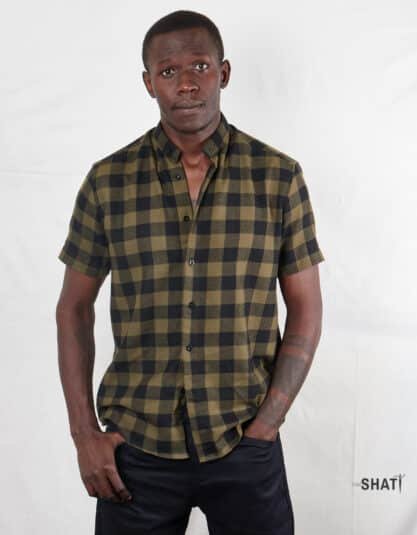 Green and black Checkered Short Sleeved Shirt